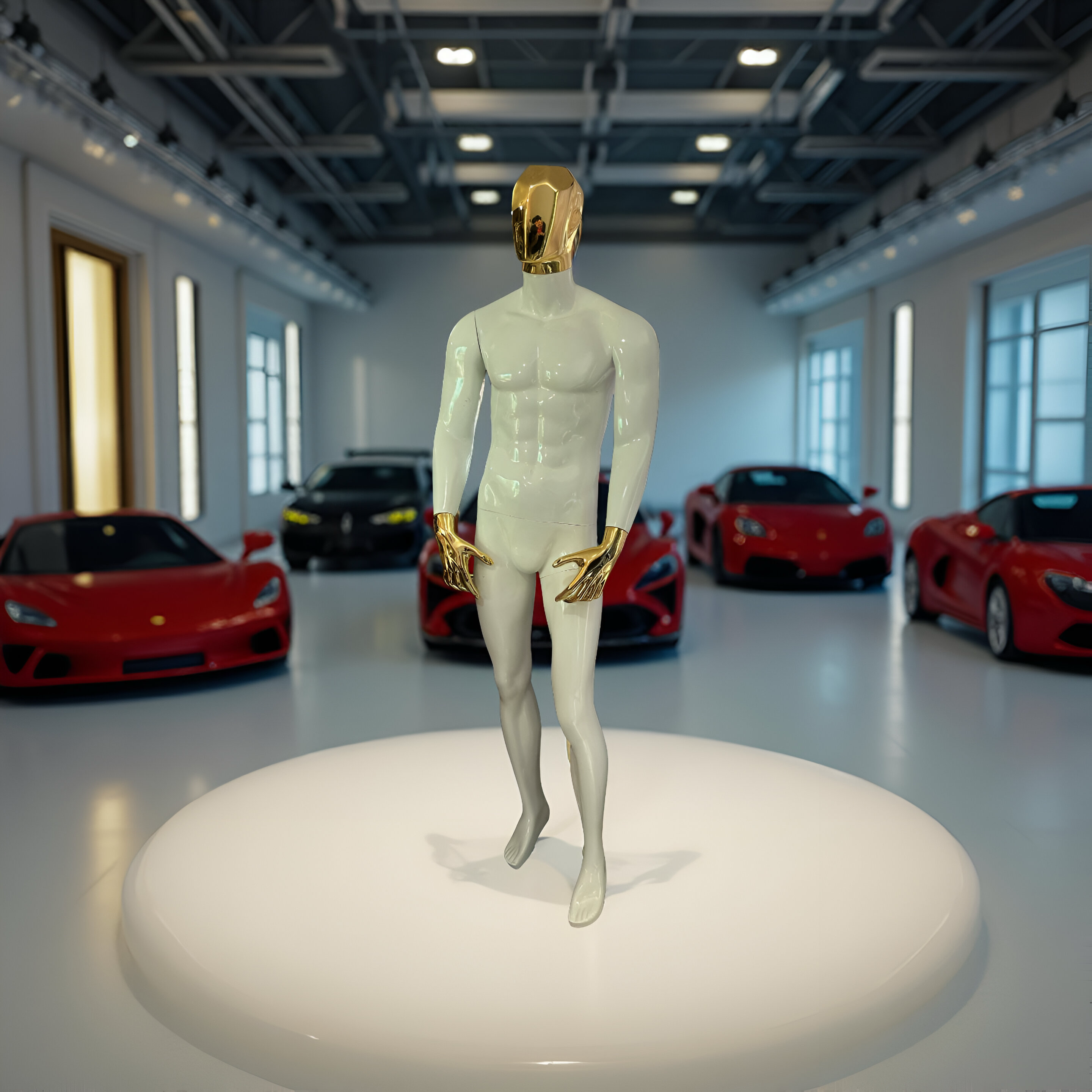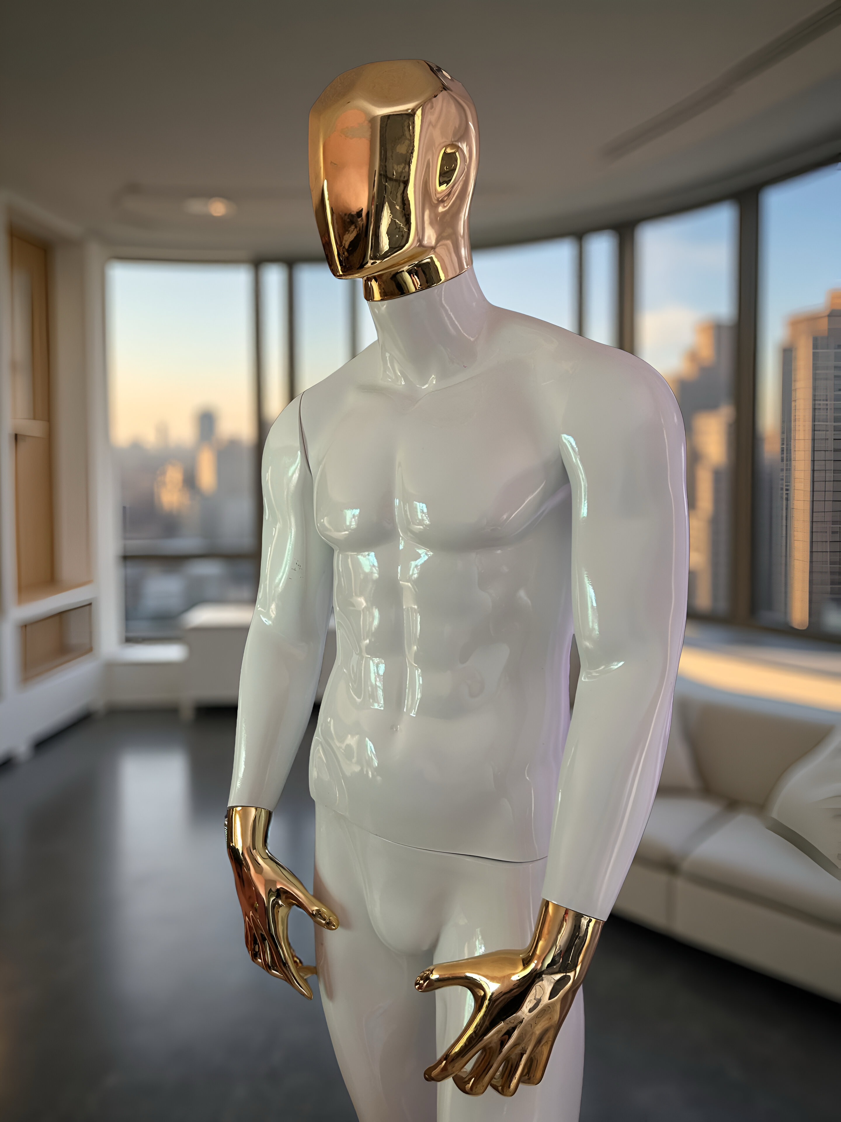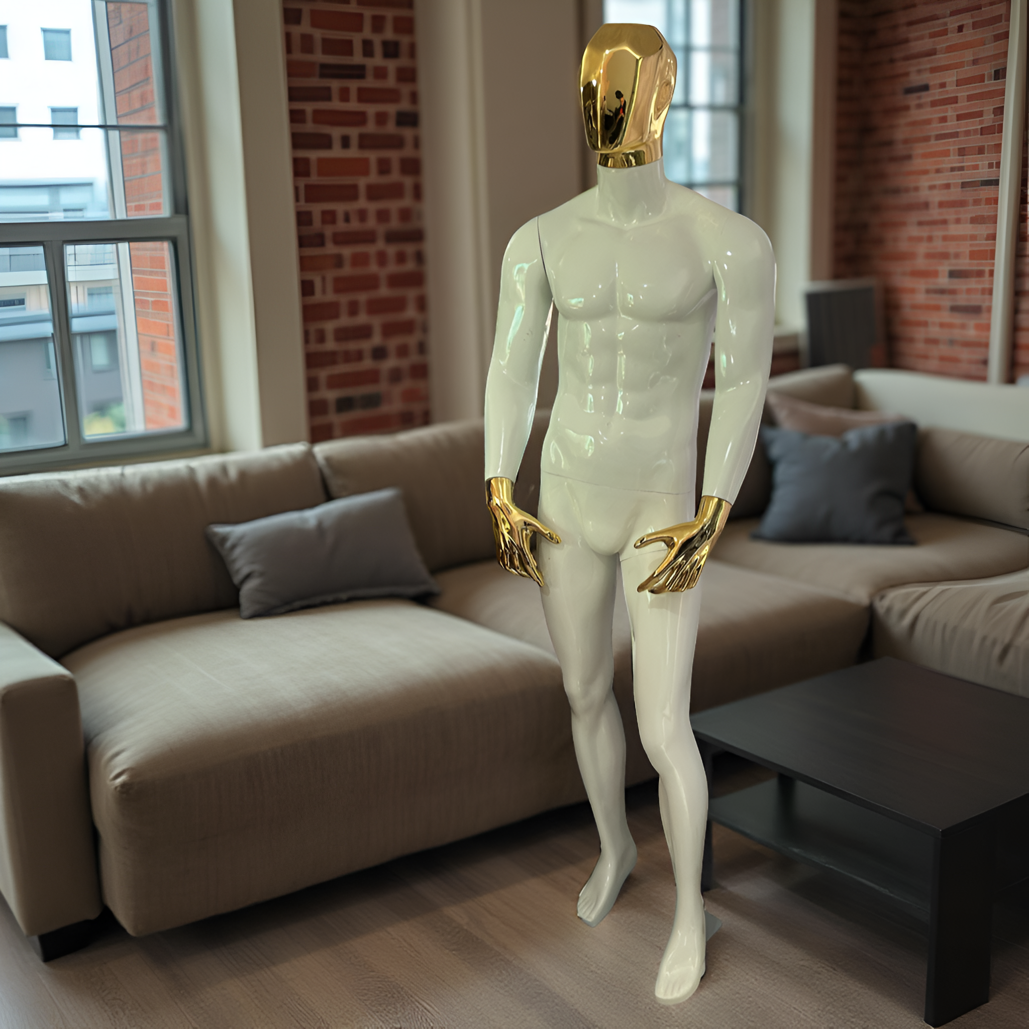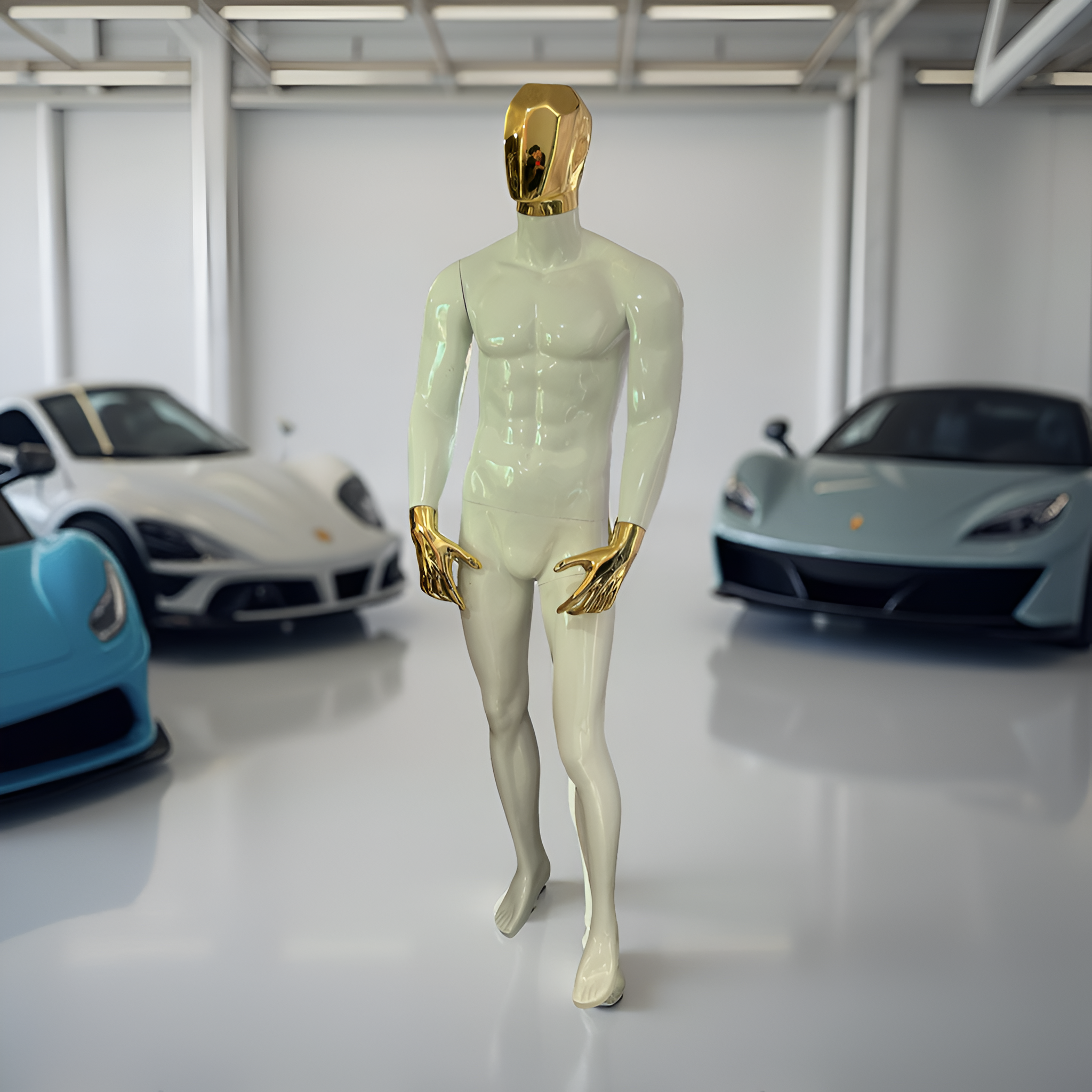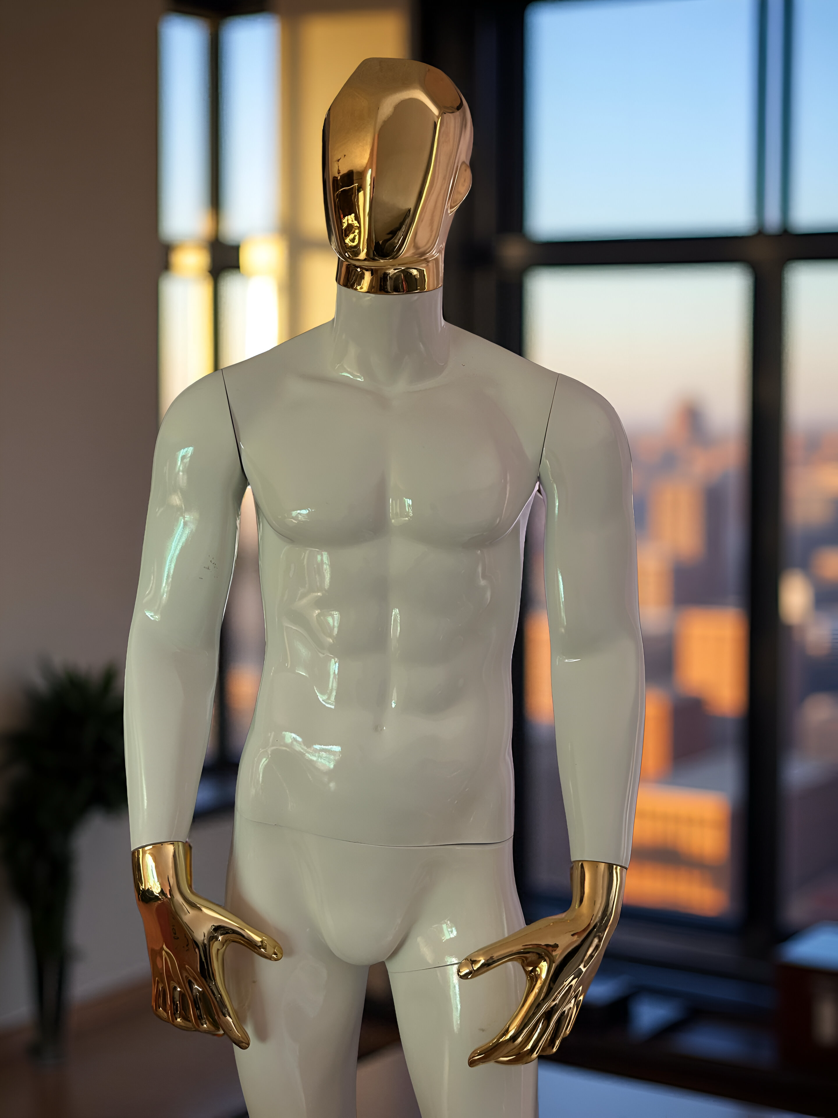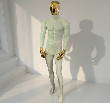 este maniquí está ideal para para tiendas de ropa de caballero, todo le queda perfecto, musculoso con detalles cromados que harán que lo que le pongas se le vea increíble.