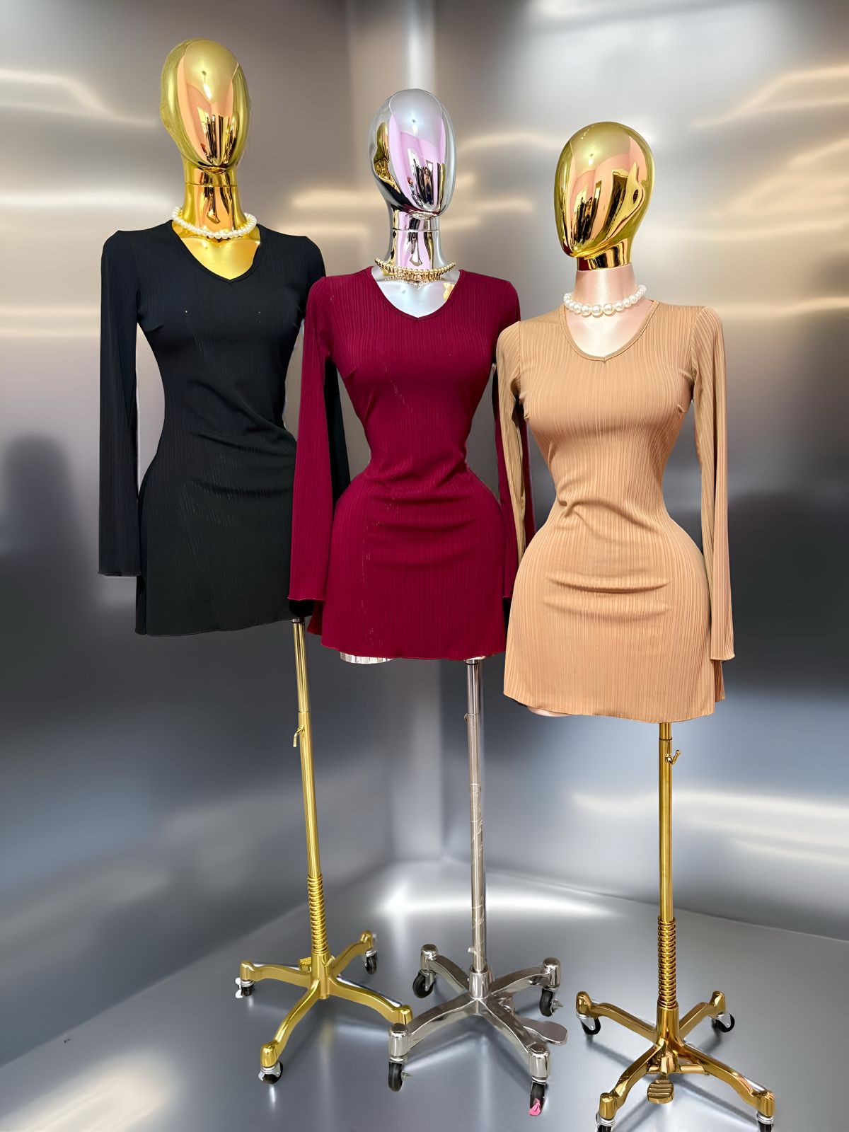 Maniquí articulado importado en color dorado con brazos y base triángulo