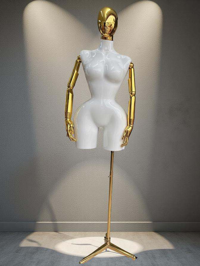 Maniquí articulado importado en color blanco con brazos y base triángulo